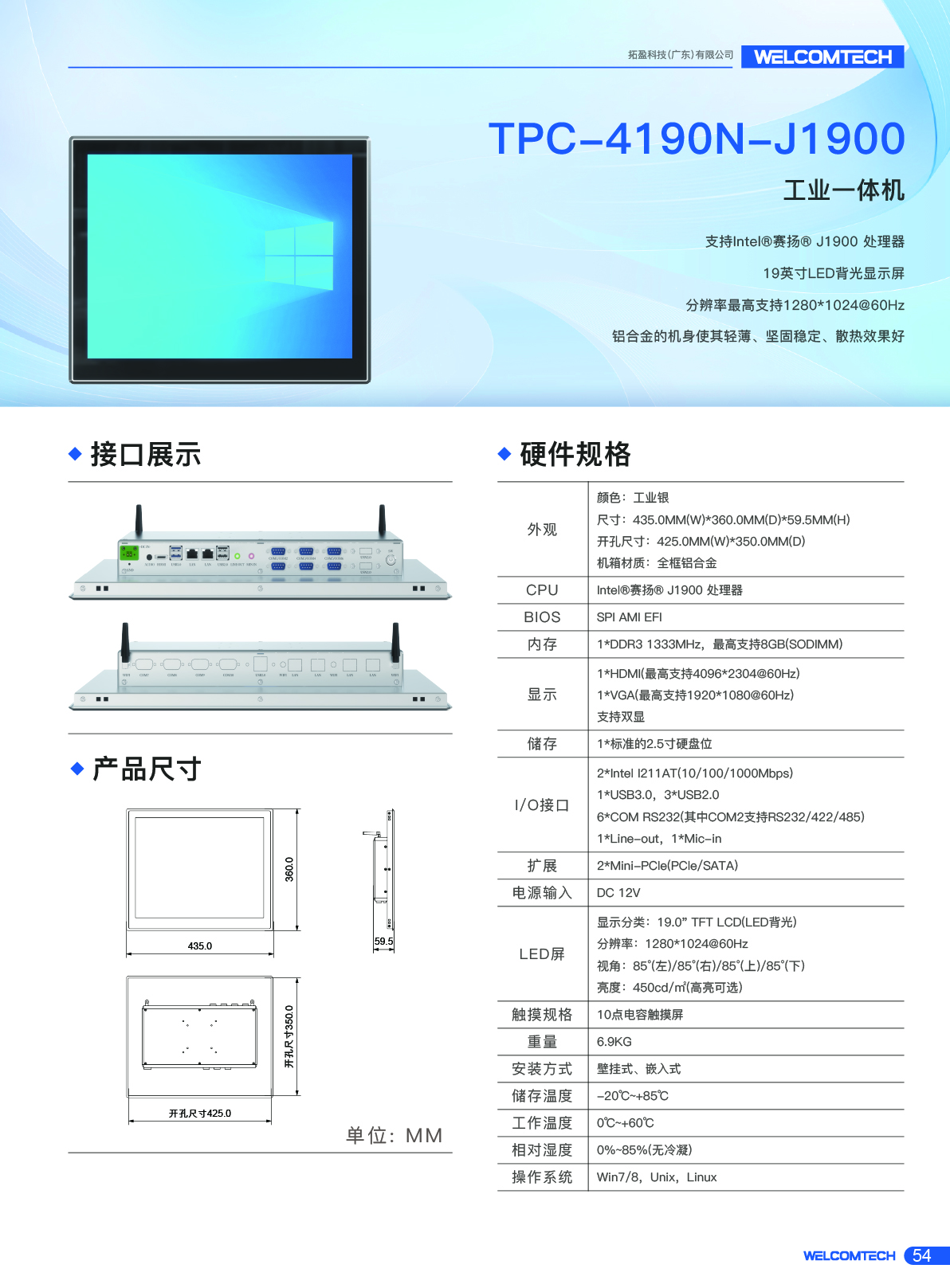 TPC-4190/酷睿8代/10代/19寸工業觸摸一體機
