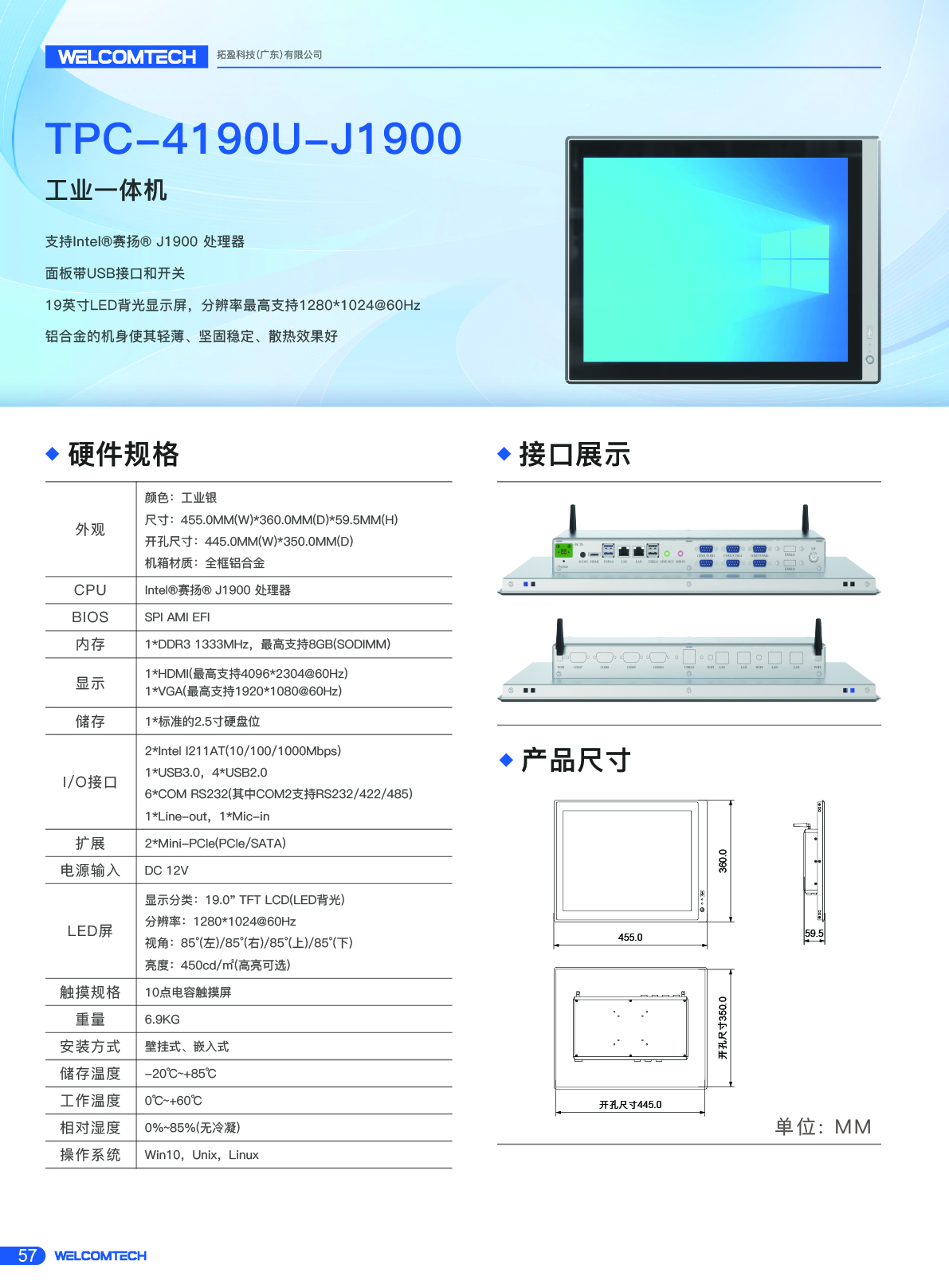 WPC-4190/6代/7代/19寸工業觸摸一體機