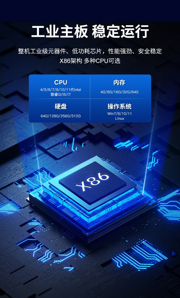· 擁有豐富的I/O接口,1*LAN(可選配雙網)、4*USB3.0、8*擴展口(可擴展COM、USB等)