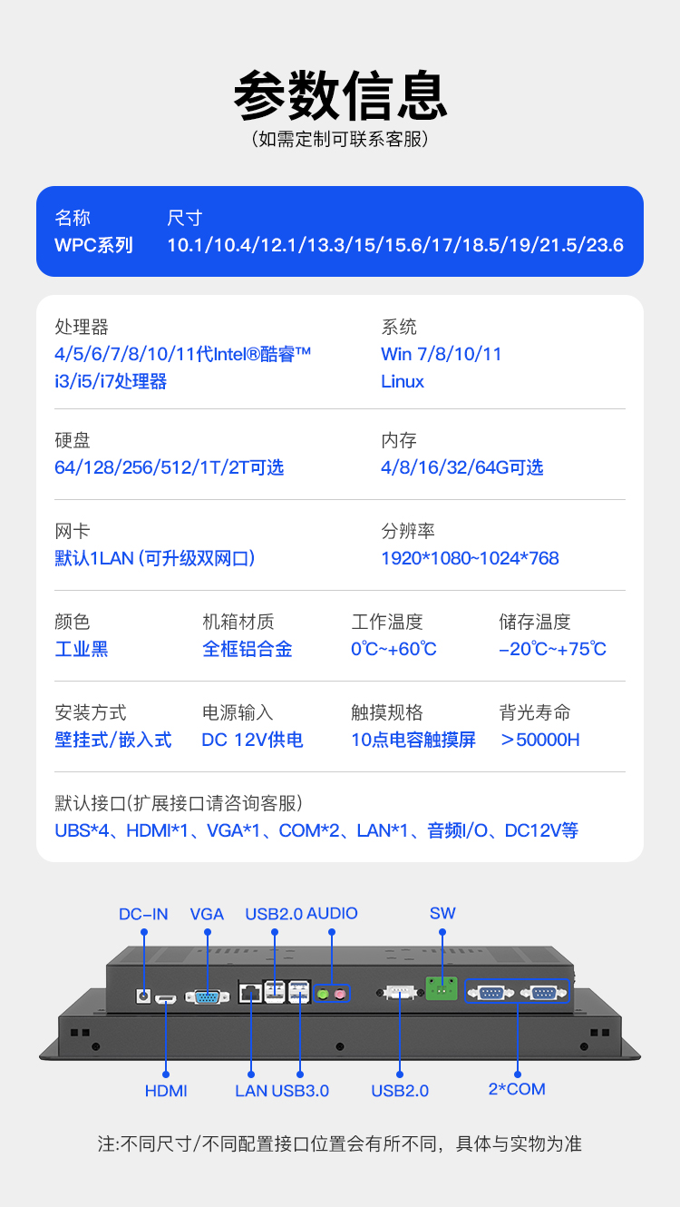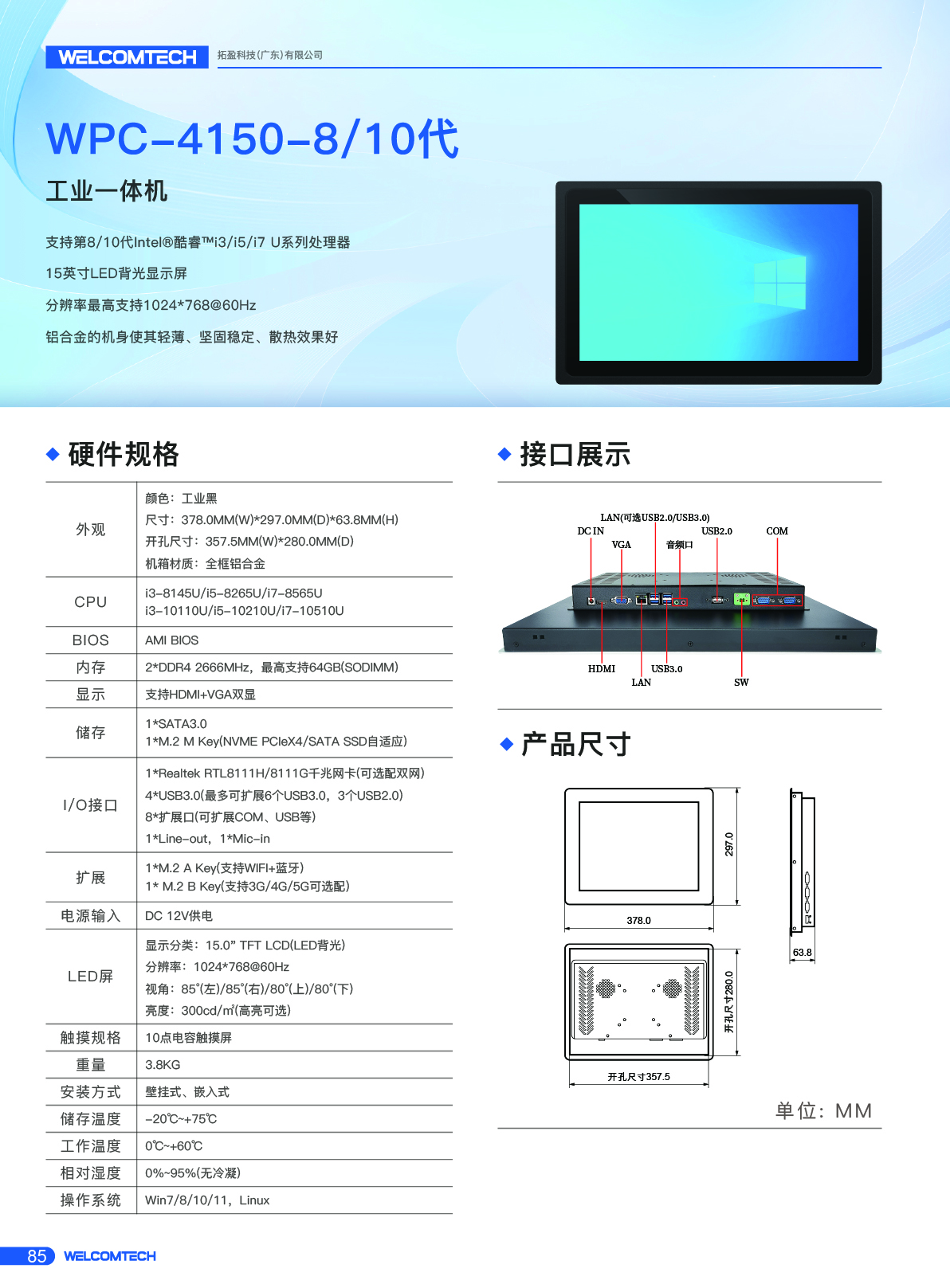 WPC-4150/8代/10代/15寸工業觸摸一體機